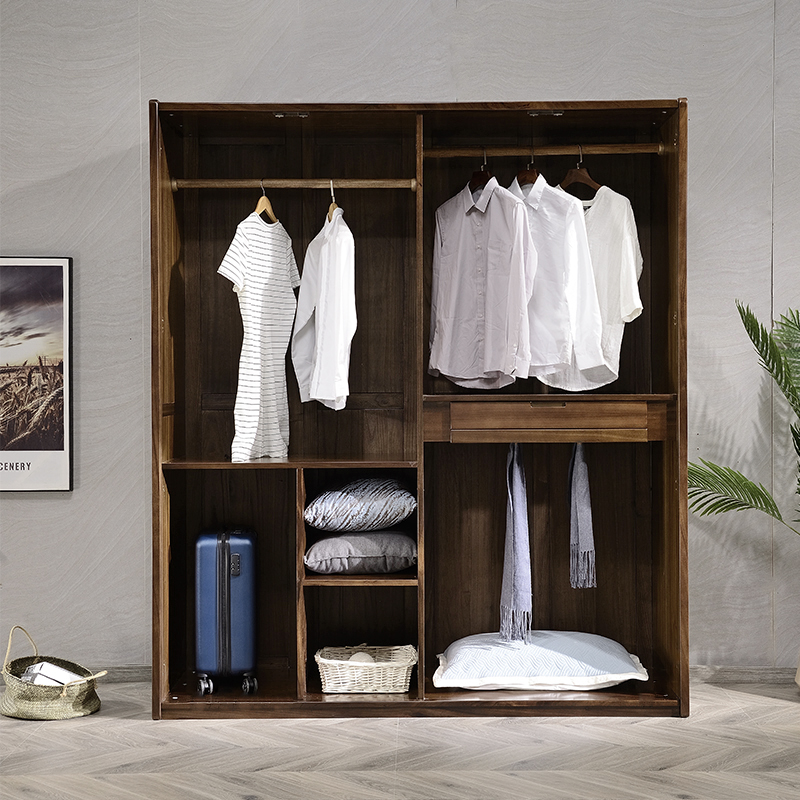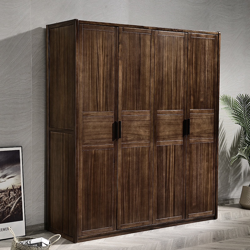 Nordic solid wooden wardrobe black walnut modern minimal household clothes Italian 345 - door bedroom locker