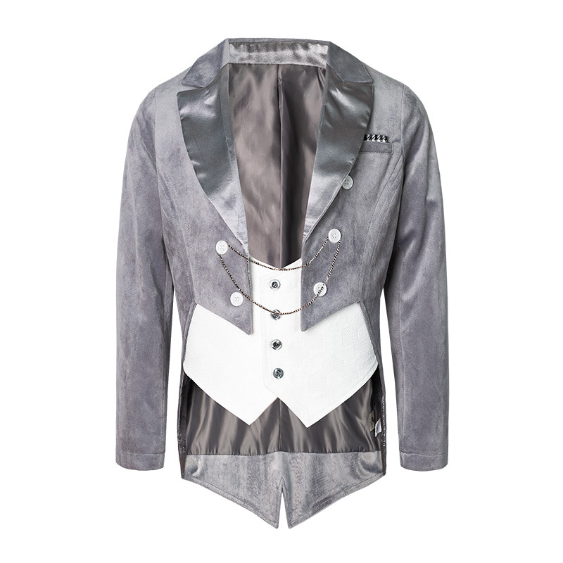 Leven Jubilee Leisure Regular Spring Autumn Season Single Row Buttondown Sky Goose Suede Gown Children's Male Grey New Foreign Pie Men Suit