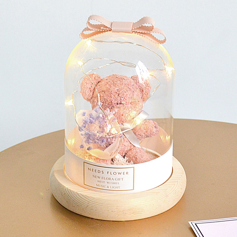 Immortal flower starry bear gift box glass cover preserved flower dry flower to send girlfriend birthday Valentine's Day gift