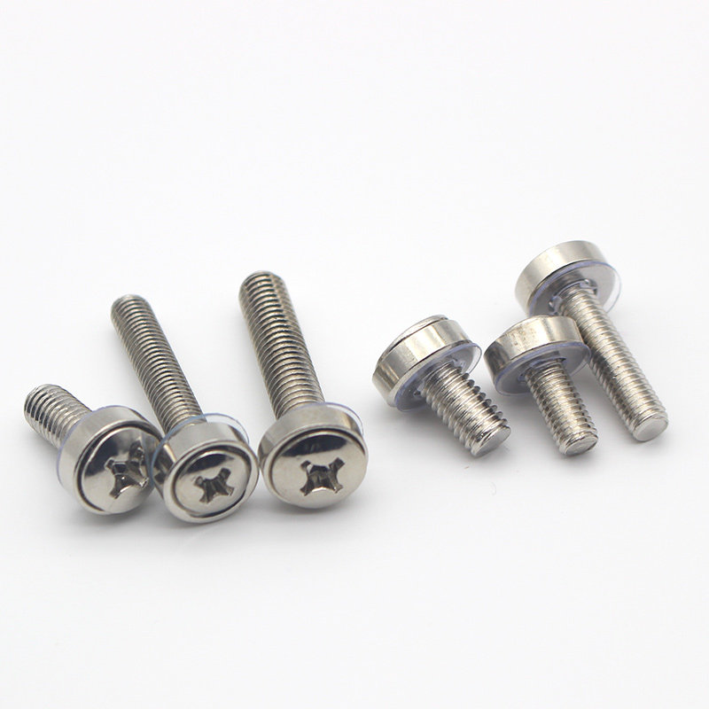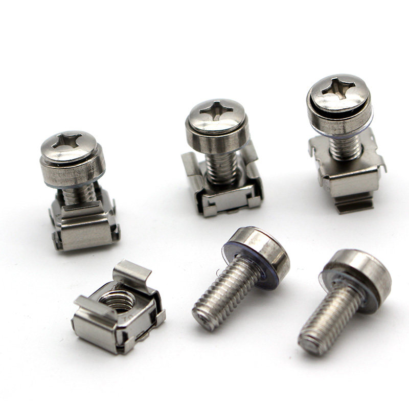 304 stainless steel plated nickel crown screw cabinet triple combination screw buckle type screw nut combined M5M6