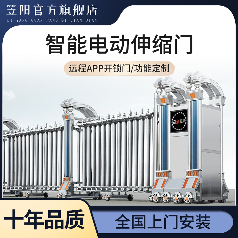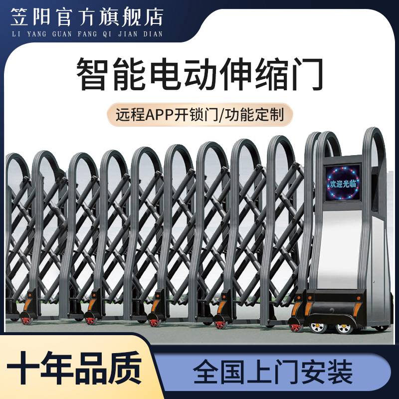 Electric telescopic door aluminum alloy factory automatic courtyard gate remote control trackless construction site stainless steel telescopic gate