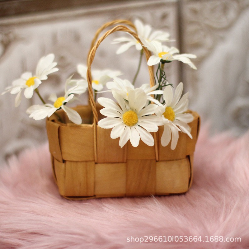 Pure hand-woven wood chip small basket flower basket simulation flower basket hand basket children posing hand basket mini basket