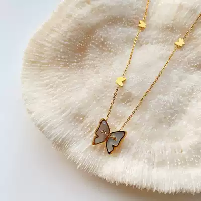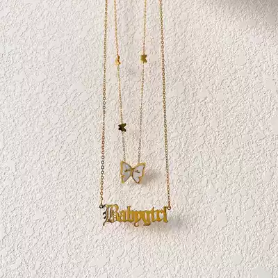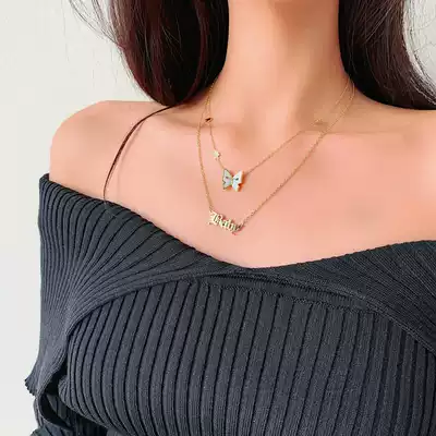 liviahome butterfly letter gold-plated necklace European and American ins design sense stacked short choker clavicle chain