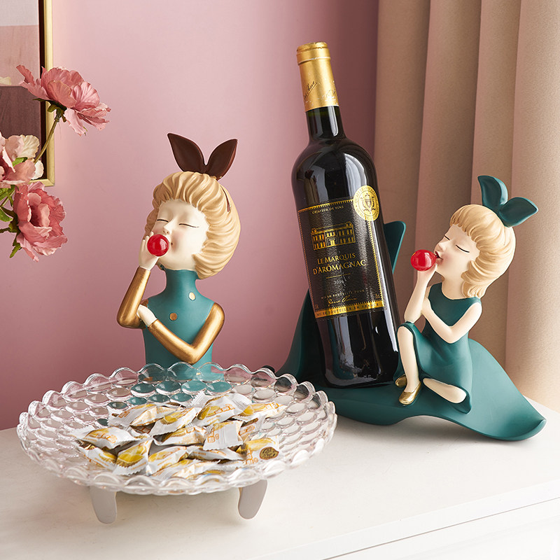 Nordic light luxury modern creative home living room wine cabinet decoration Entrance key storage red wine rack desktop decoration
