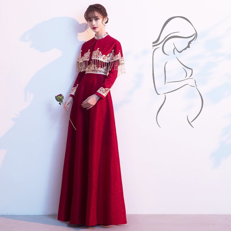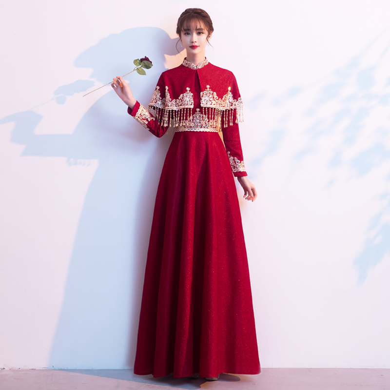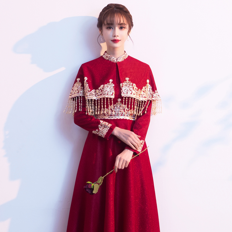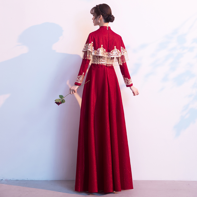 Toast bridal qipao 2021 new winter large size woman Chinese style wedding betrothed gown woman back door Long sleeves