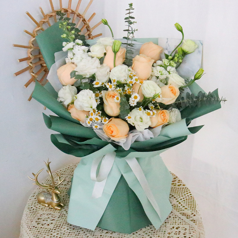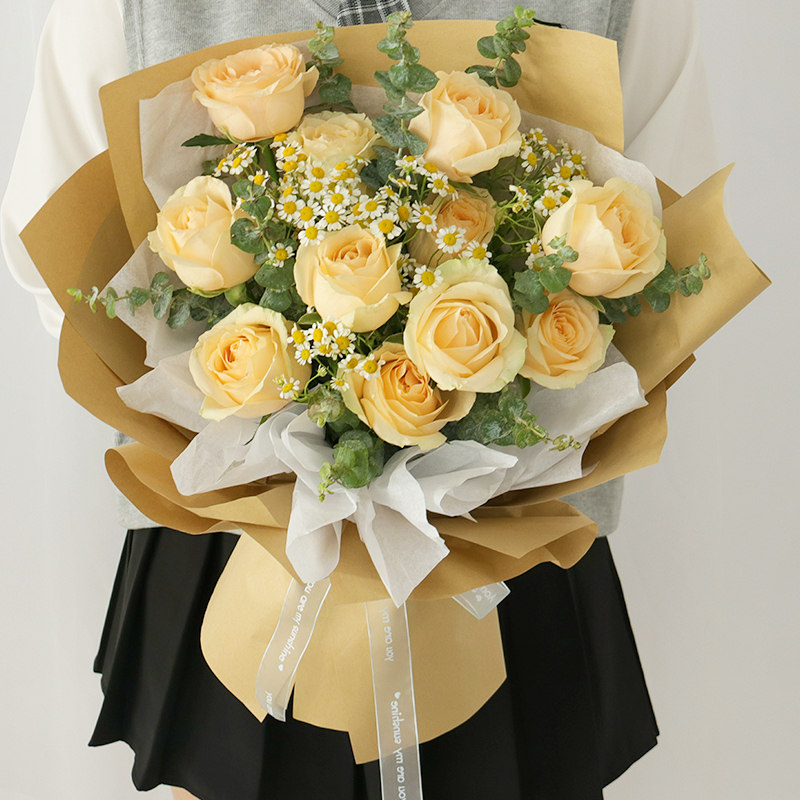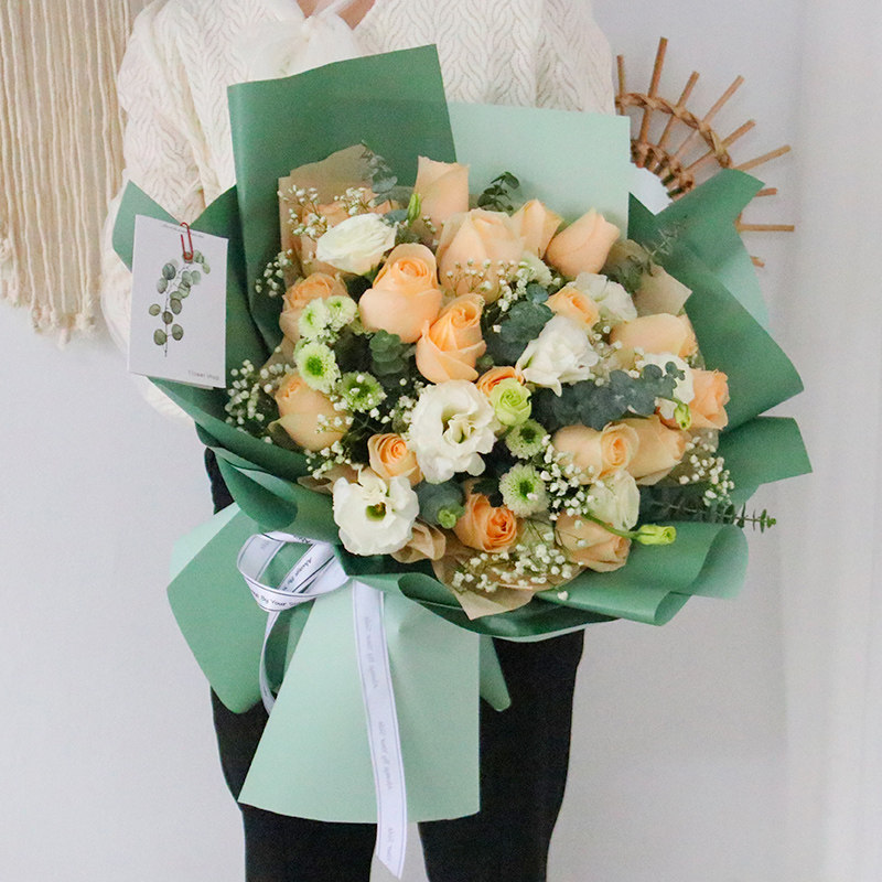 (Elegant and luxurious) Bouquet of 33 champagne roses (Closed moon shy flower) Bouquet of 19 champagne roses (Blooming flowers) Bouquet of 52 champagne roses (Proudly out of group) 19 champagne roses