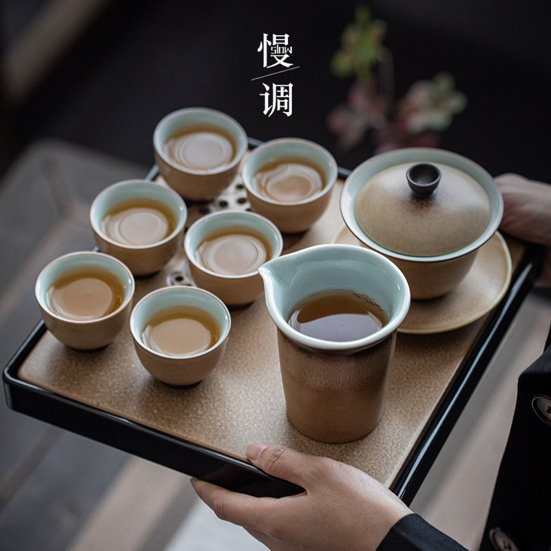 Ruqu Side Handle Pot Gift Box Set - Lantianmu Ruqu Side Handle Pot Gift Box Set - Jietianhuang Ruqu Gaiwan Gift Box Set - Jietianhuang Ruqu Gaiwan Gift Box Set - Lantianmu Ruqu Tea Tray - Blue