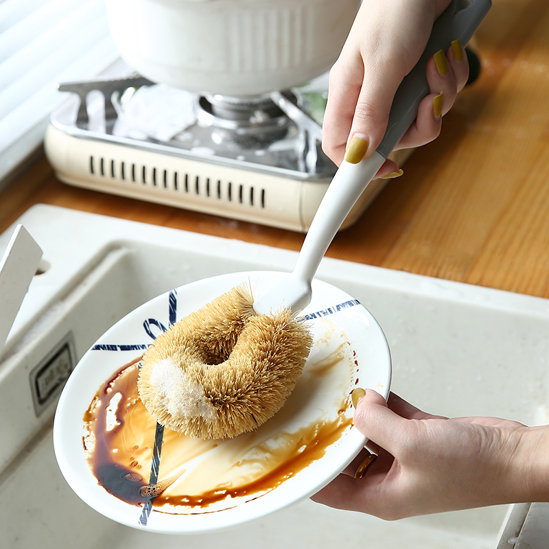 Brush pot Divine Instrumental Wash Pan Brush Home Kitchen Clean Decontamination Without Dipping Oil Long Handle Coconut Palm without hurting the pan brushed bowl cooking broom-Taobao