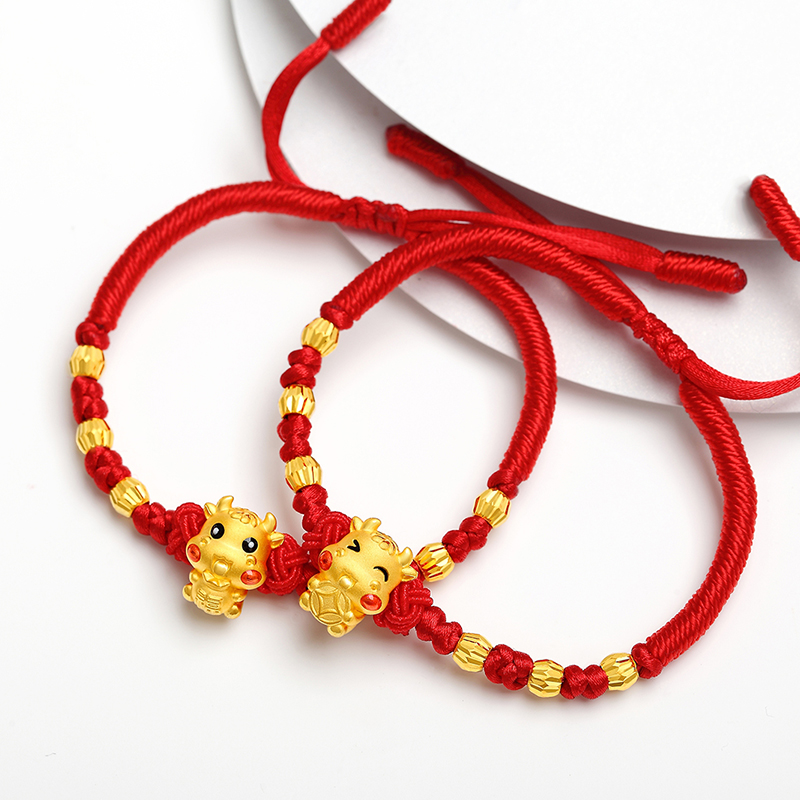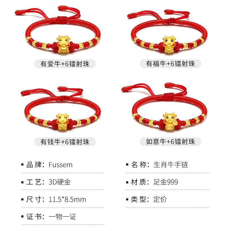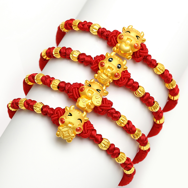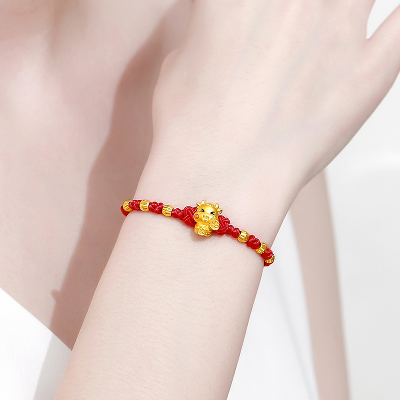 999 pure gold gold zodiac ox transfer beads red bracelet Taurus hand female ox year gift calf