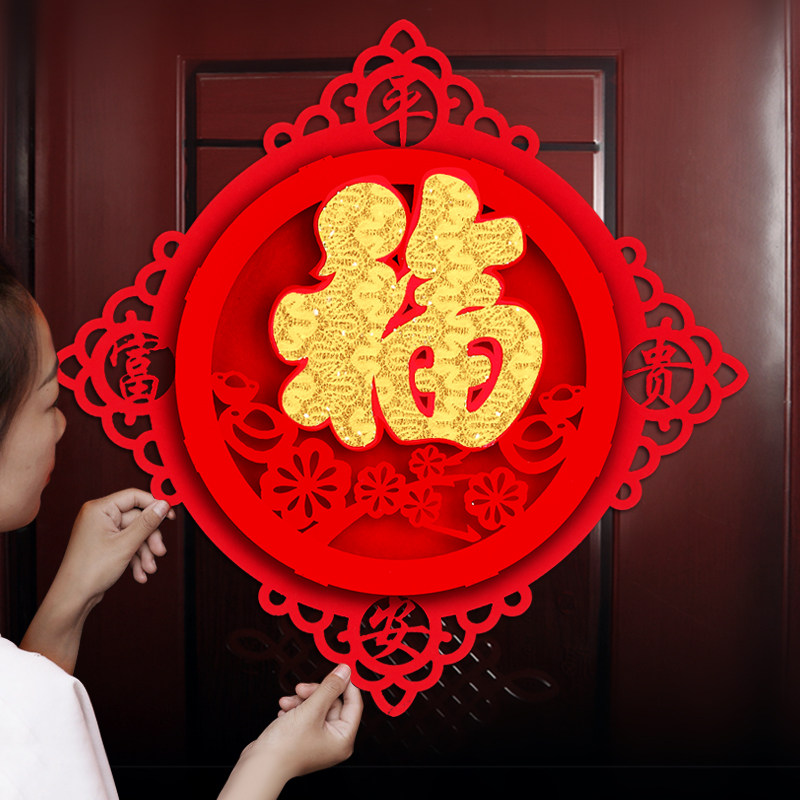 New Year's Wufu Lindoor Footypo Gate Entrance Door Security Security Door security door 2022 Huge Spring Festival Lunar New Year Cubism Solid Upscale Flannel