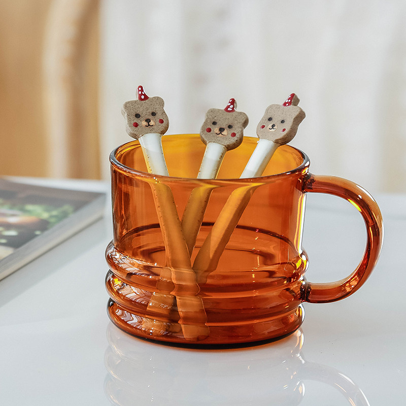 It turned out to be mud cute watermelon bear long handle coarse pottery eating spoon home drinking soup spoon ceramic spice spoon creative tableware