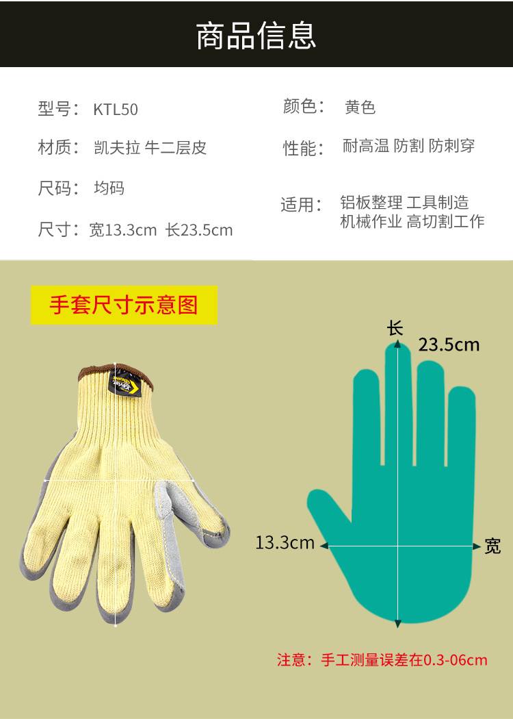 DuPont KTL50 Cow Two-layer Leather Gloves High Wear-resistant 5-level Anti-cutting Outdoor Anti-puncture Anti-binding New Thickened Type