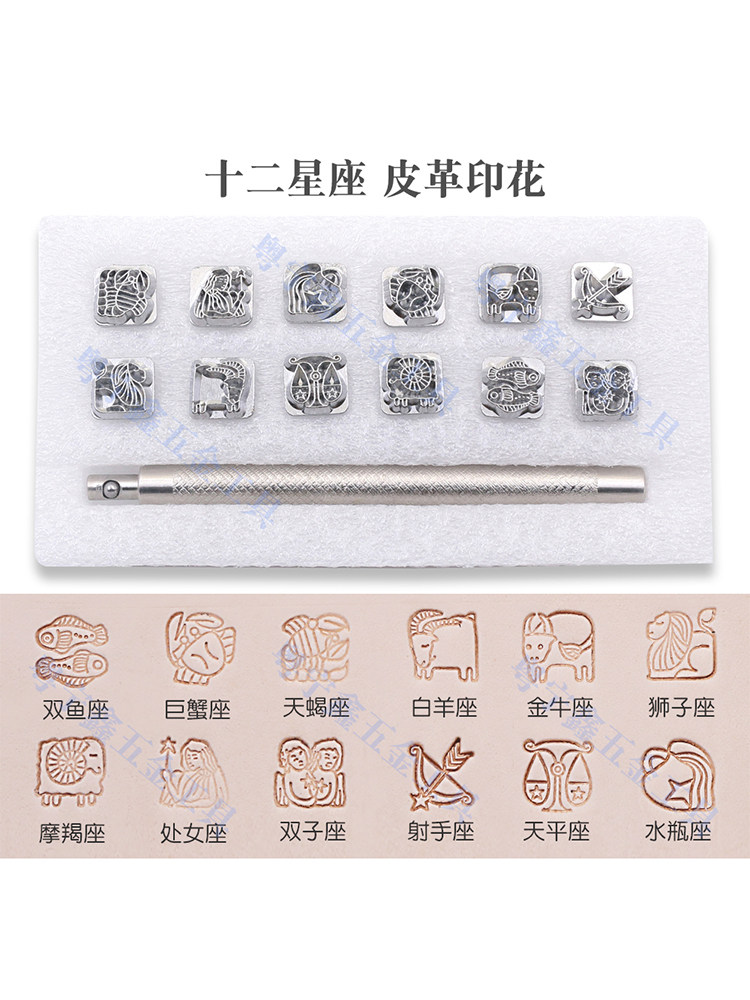Leather printing red zodiac zodiac turf carving pattern handmade diy punch tool set vegetable tanned leather genuine leather
