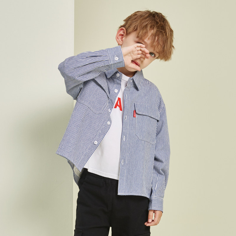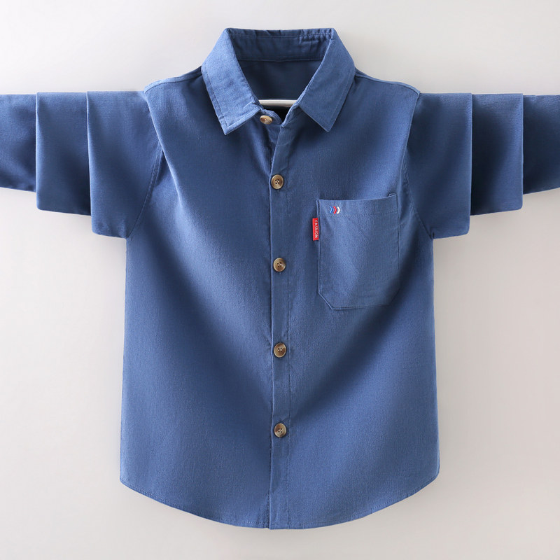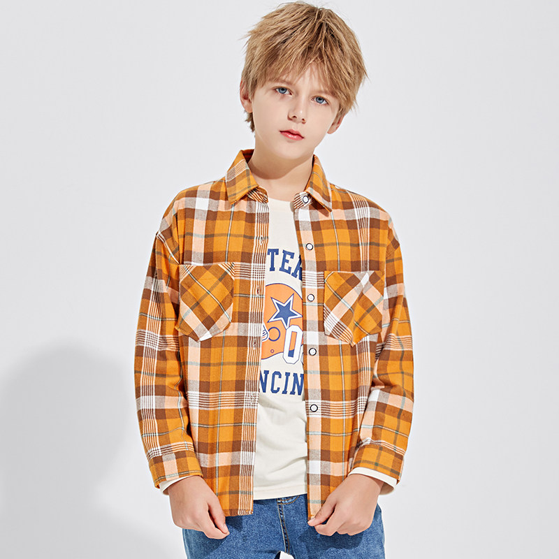 Boys long sleeve shirt 2021 new spring and autumn children's plaid shirt boys autumn clothes in the big boy plus velvet thickened men