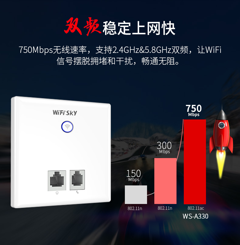 WiFiSKY A330 750M ultra-thin 86-type wireless in-wall hotel WiFi coverage panel AP