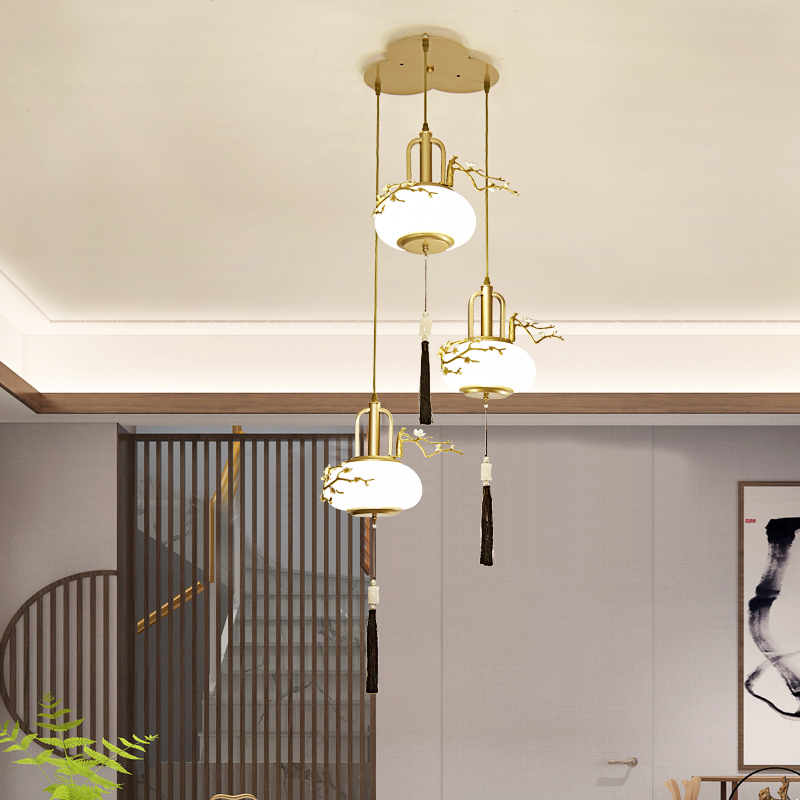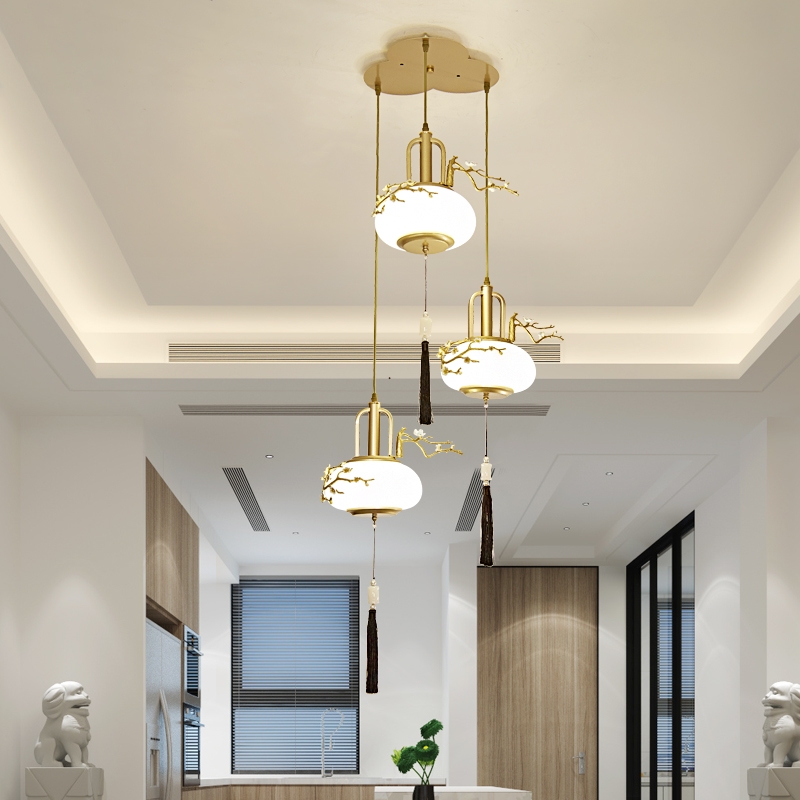 New Chinese style small chandelier bedroom bedside porch corridor dining room single head lamp tea room Chinese style Zen staircase lamps