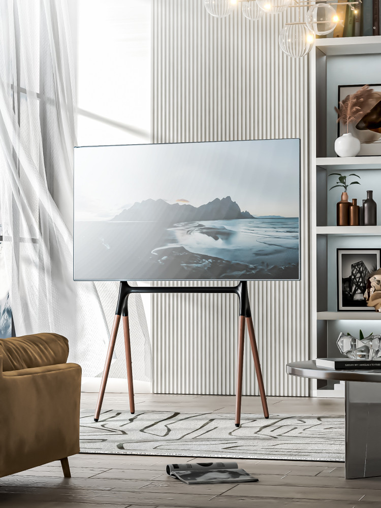 North Arc Floor-standing TV Stand Removable Solid Wood Base Art Shelf 45-90 Inch Man Walker FS600