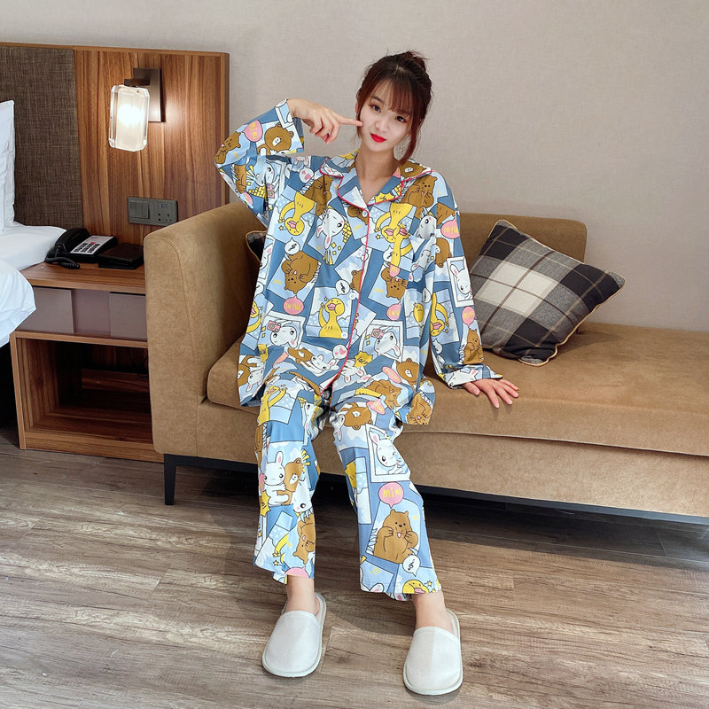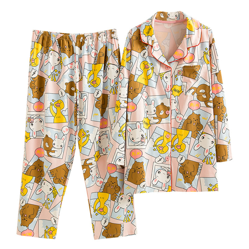 Cartoon Gats Up Extra Yards Pure Cotton Pyjamas Women Spring And Autumn Cardioveralls Long Sleeve Loose home Fear MM200 catsuit-Taobao