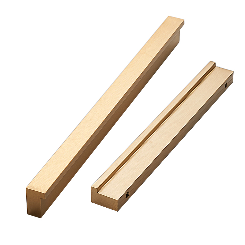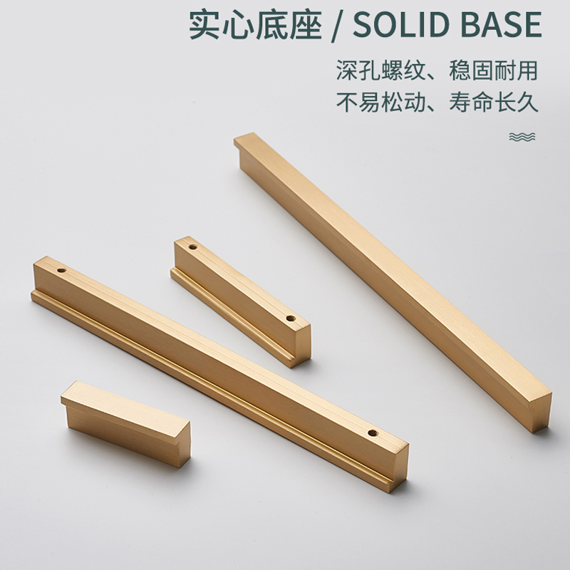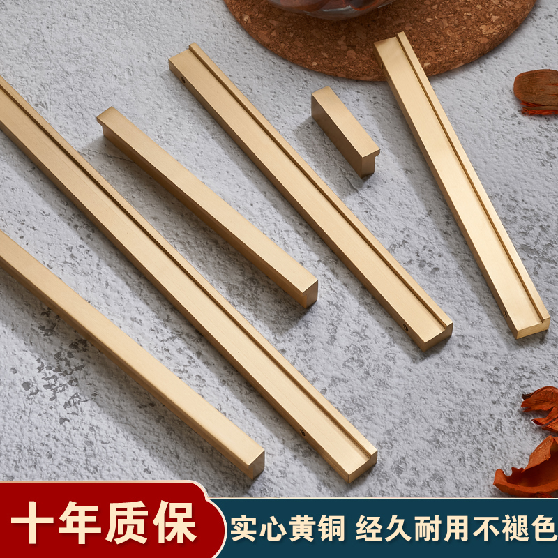 Brass handle cabinet door light luxury double hole pure copper door handle overall cabinet drawer modern minimalist wardrobe one word copper handle - Taobao
