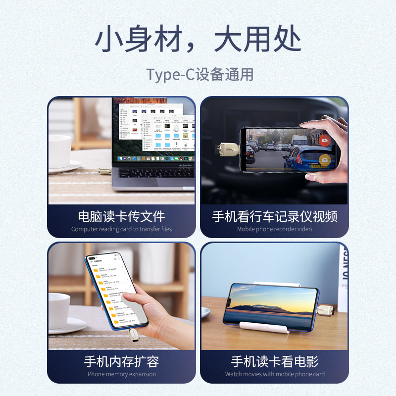 Green Union type-c Android phone high speed card reader usb3 0 on-board tf sd memory card otg mini