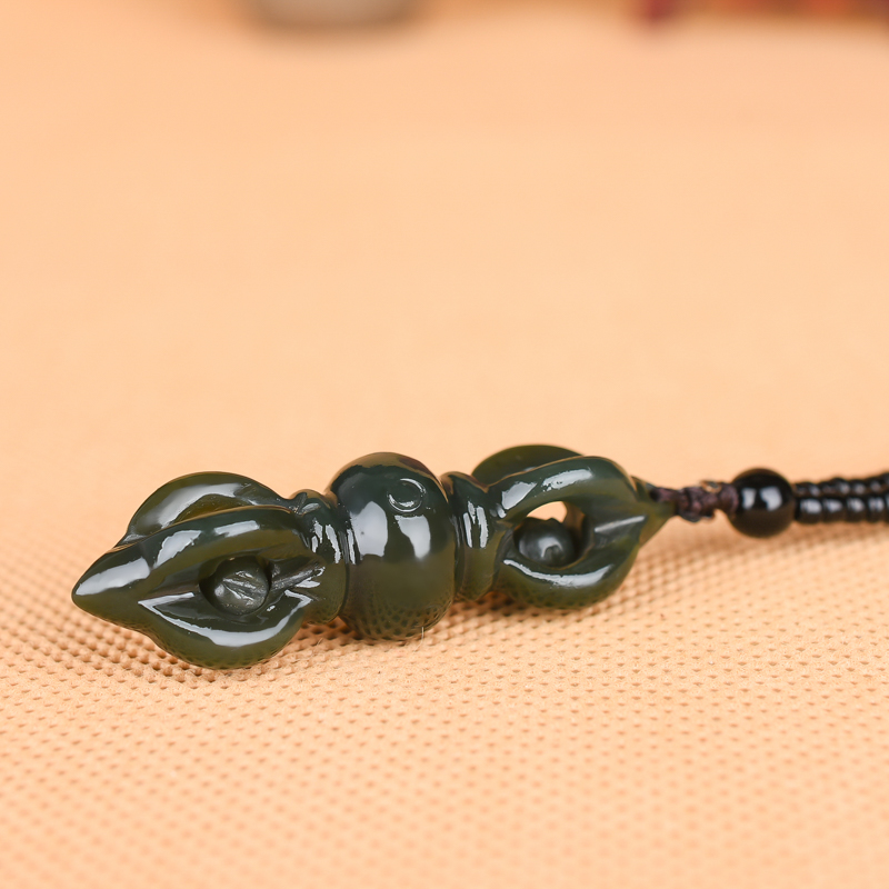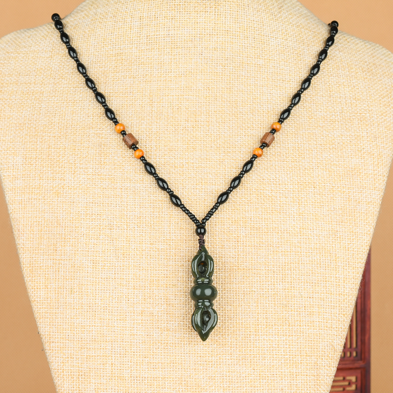 Natural Hetian jade sapphire jade attracts wealth and descends the magic pestle men and women necklace fashion pendant sweater chain diy accessories