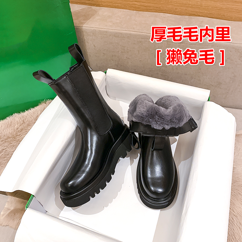 2022 CHELSEA BOOTS GLINT Thickened Fur Integrated Snow Boots Women's Winter Warm Tobacco Cylinder Boots Cotton Boots