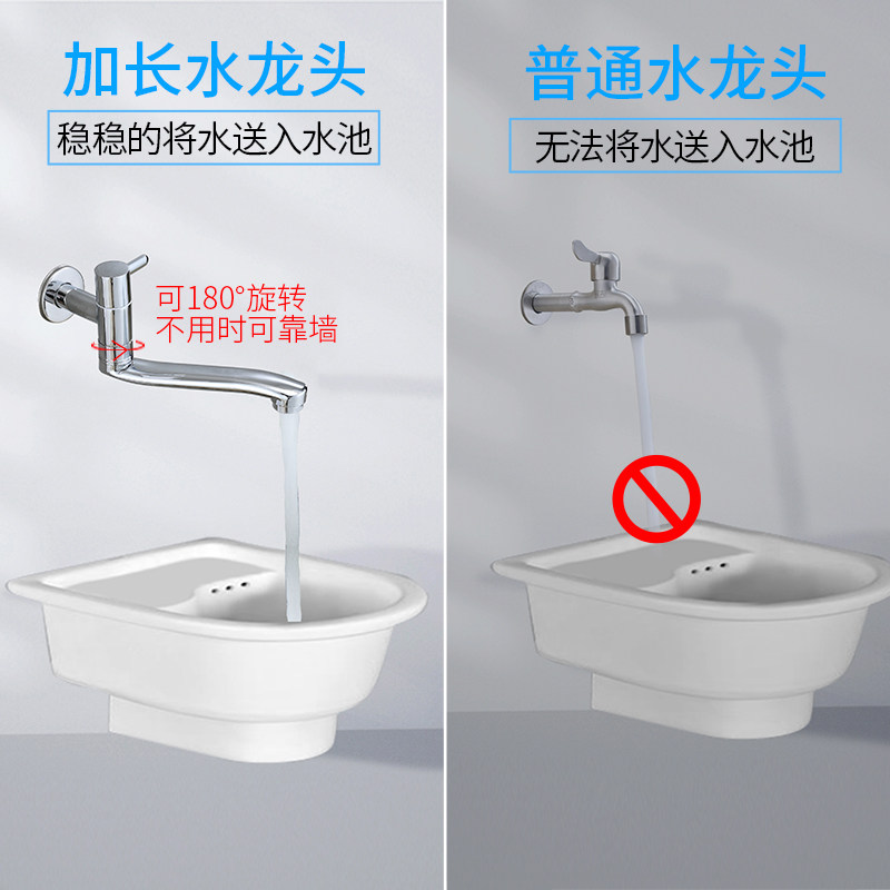 Brass mop pool faucet single cold into the wall type extended balcony mop mopping floor splash-proof rotatable faucet