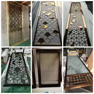 New Chinese-style titanium alloy stainless steel metal partition screen Light luxury hollow carving relief grille flower grid decoration customization