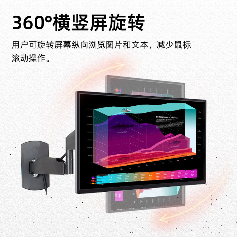 Horizontal and vertical screen rotation computer screen bracket Wall rack up and down 90 degrees tilt wall shelf 12-27 inches