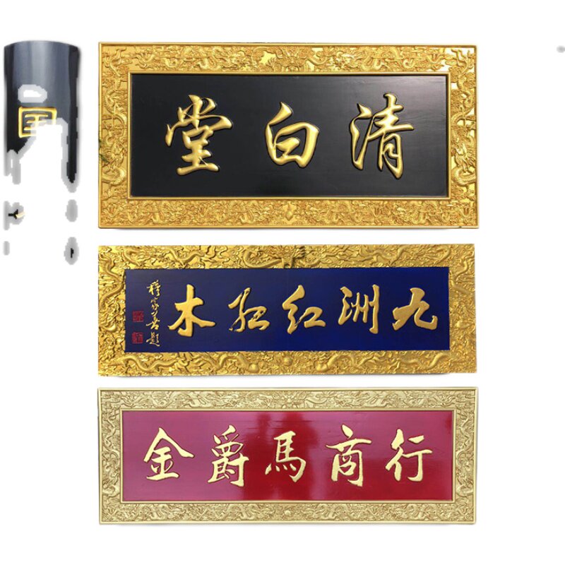 Dongyang wood carving solid wood plaque custom door shop Temple Kowloon plaque lettering Calligraphy word couplet engraving