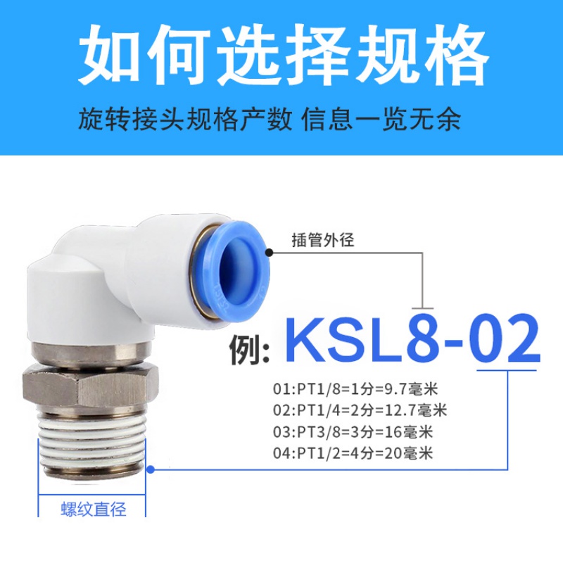 KSL04-M5 connected to 4mm pipe thread M5KSL04-M6 connected to 4mm pipe thread M6KSL04-01S connected to 4mm pipe thread 1 minute KS