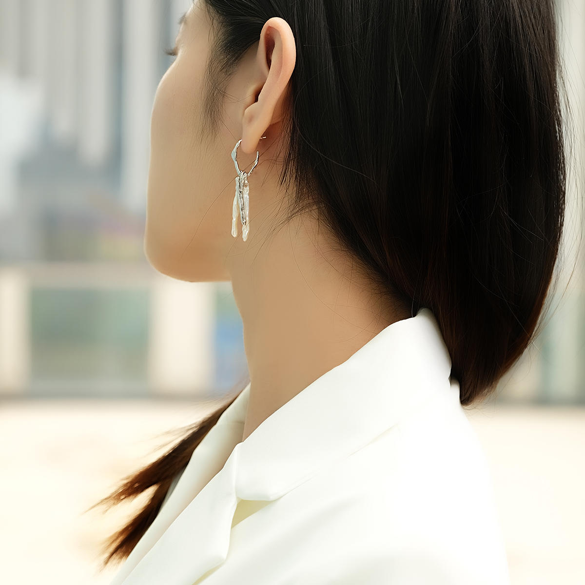HeyJewel detachable multi-wear natural Baroque pearl tear earrings high-end light luxury 925 silver earrings