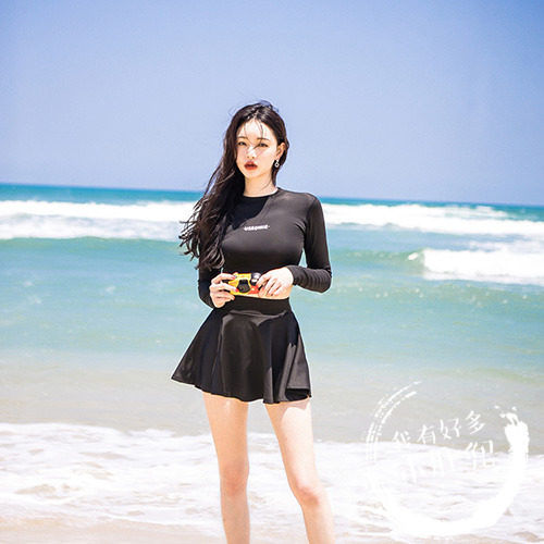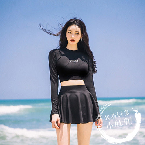 Korean ins style diving suit swimsuit women's long-sleeved sunscreen high-waist two-piece gathered conservative slim skirt swimsuit