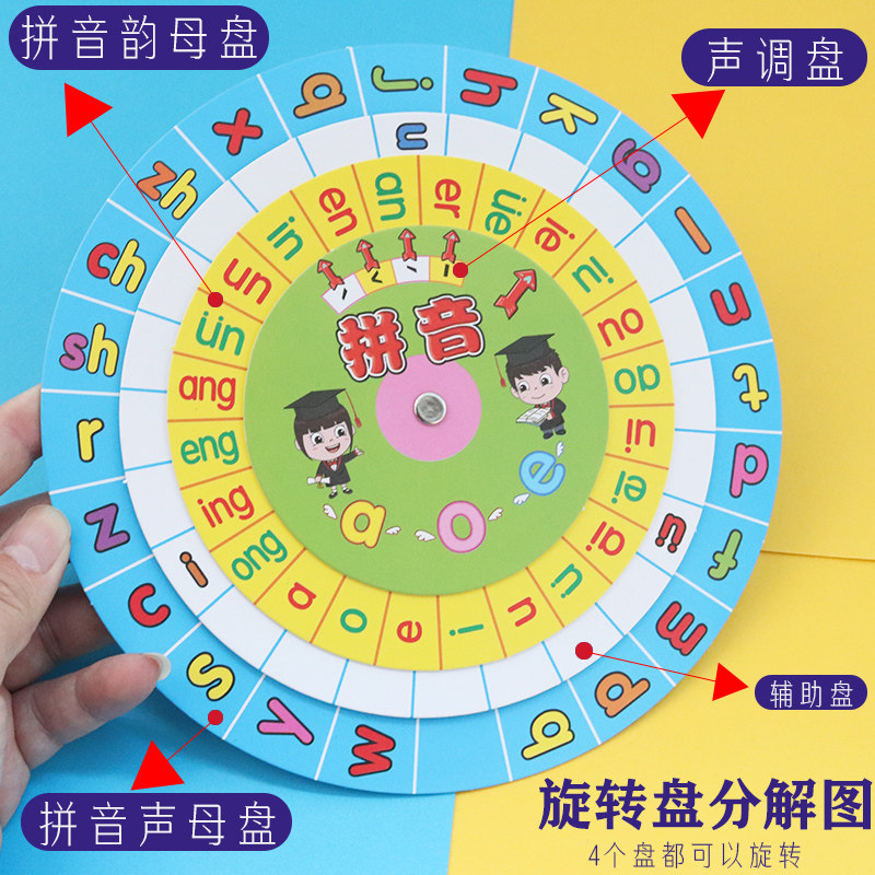 Hanyu Pinyin turntable phonics artifact Letter training disc card Kindergarten first grade reading training learning teaching aid