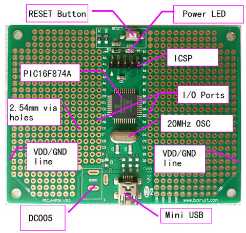 PIC18F4520 18F4525 18F877A 18F874A 877-20-I PT Minimum System Development Board