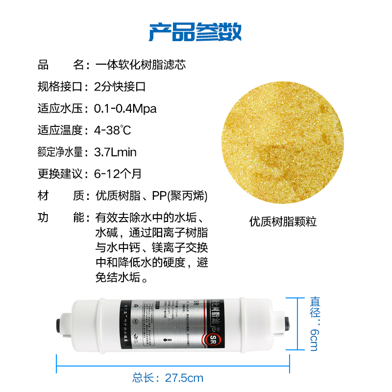 Korean-style resin filter integrated quick-connect 10-inch water purifier 2 points cation exchange SR softening scale water alkali