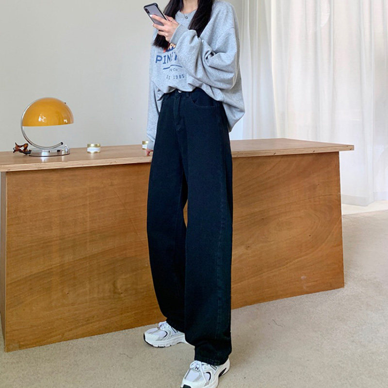 2022 New large size dress High waist straight cylinder pants children Slim Cover Belly Korean version Fried Street Jeans 100 lap