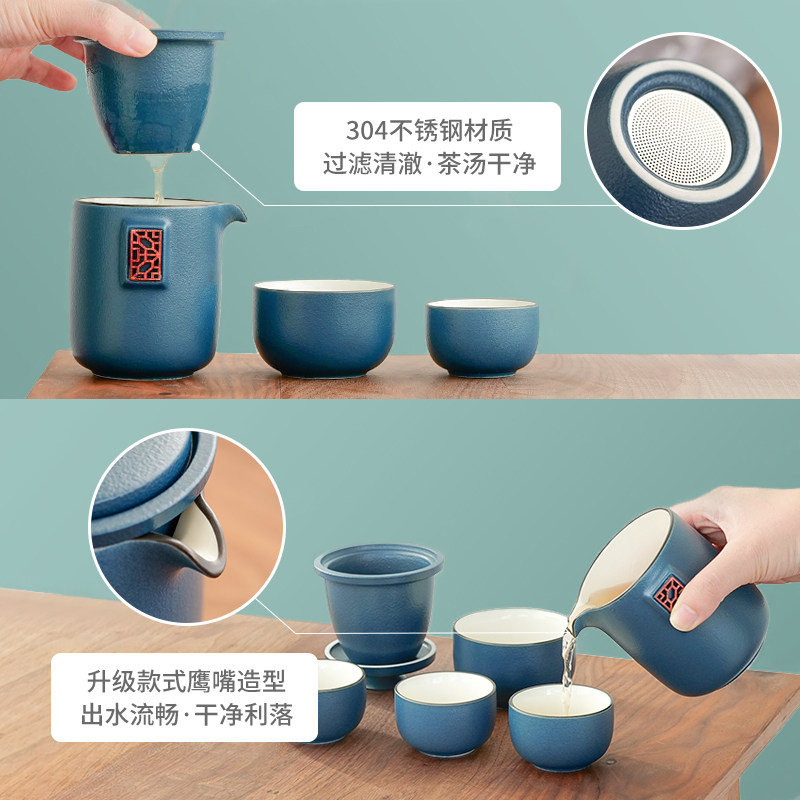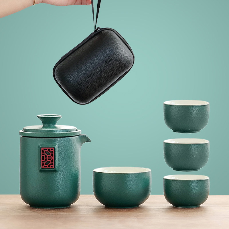 Fuqu One Pot Four Cups White (Lychee Pattern Leather Bag) Fuqu One Pot Four Cup Black (Lychee Pattern Leather Bag) Fuqu One Pot Four Cup Blue (Lychee Pattern Leather Bag) Fuqu One Pot Four Cup Green (Lychee Pattern Leather Bag)