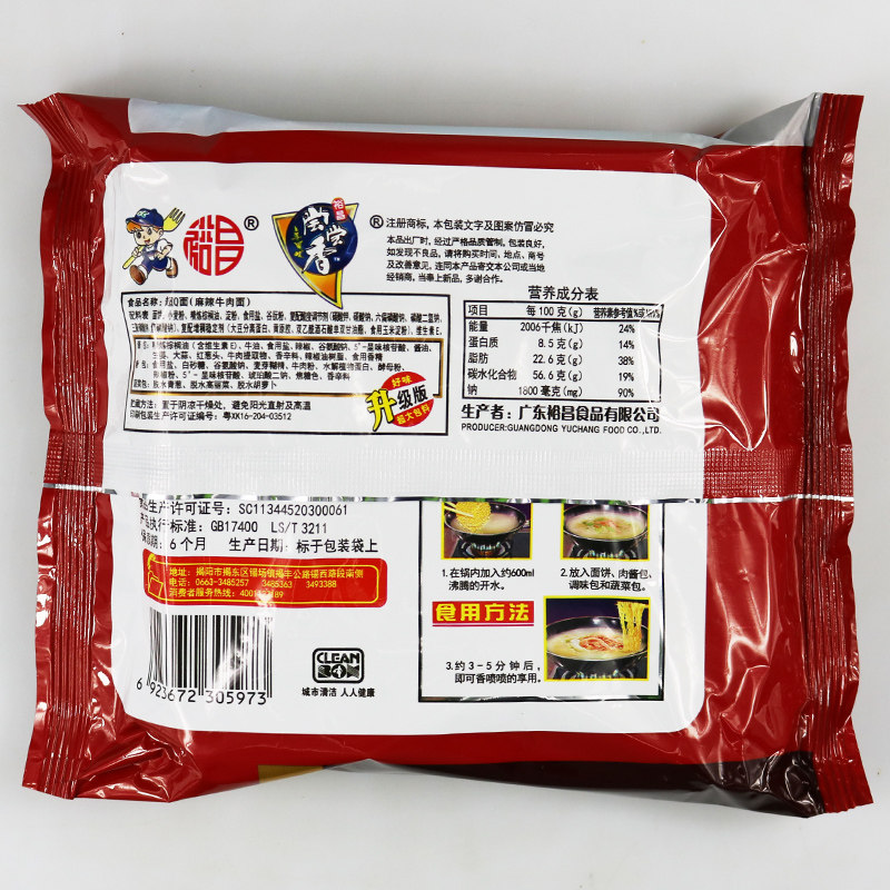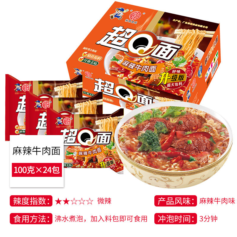 Guangdong Yuchang Chang Q face convenient noodle spicy beef noodles 100g*24 packs of fast food ready to eat and crisp noodles