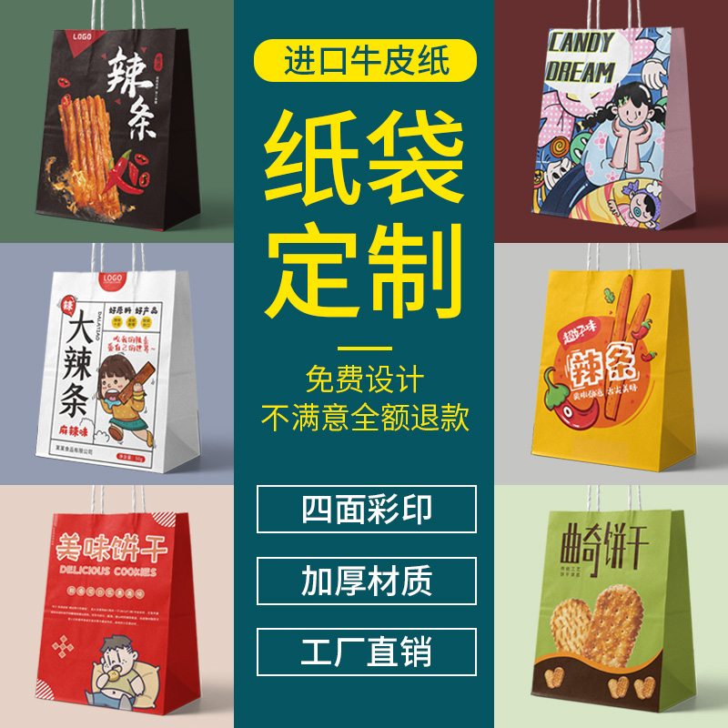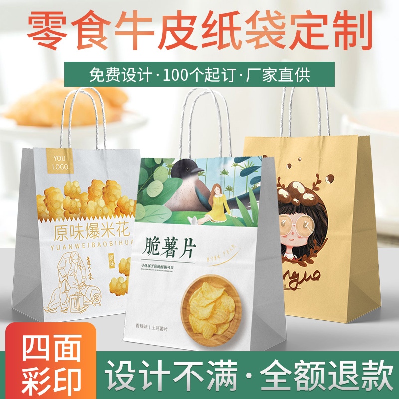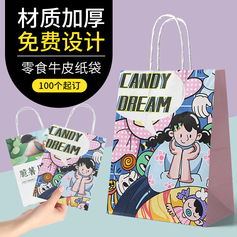Snack shop kraft paper handbag custom children's creative light food packaging bag kindergarten candy paper bag custom