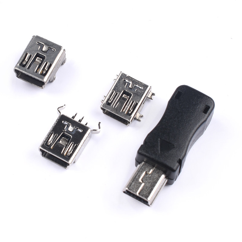 Mini USB Socket SMD Interface Female (mini-USB) 5PF Curved Needle Straight Needle Male Plastic Shell Three-piece Set