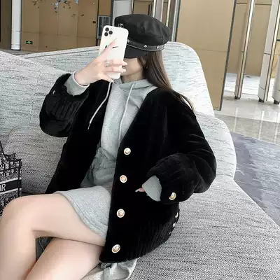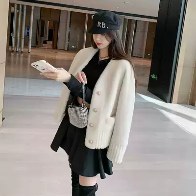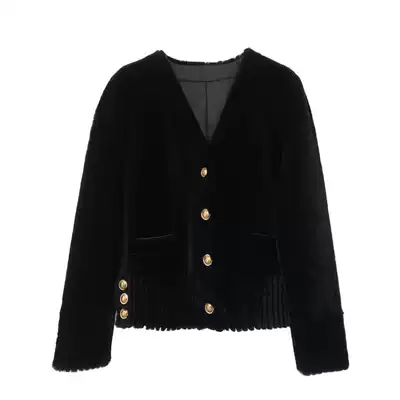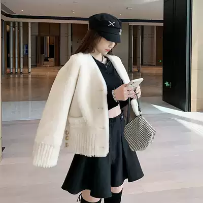 2021 new winter imported Merino fur one female short lamb fur V collar young leather coat
