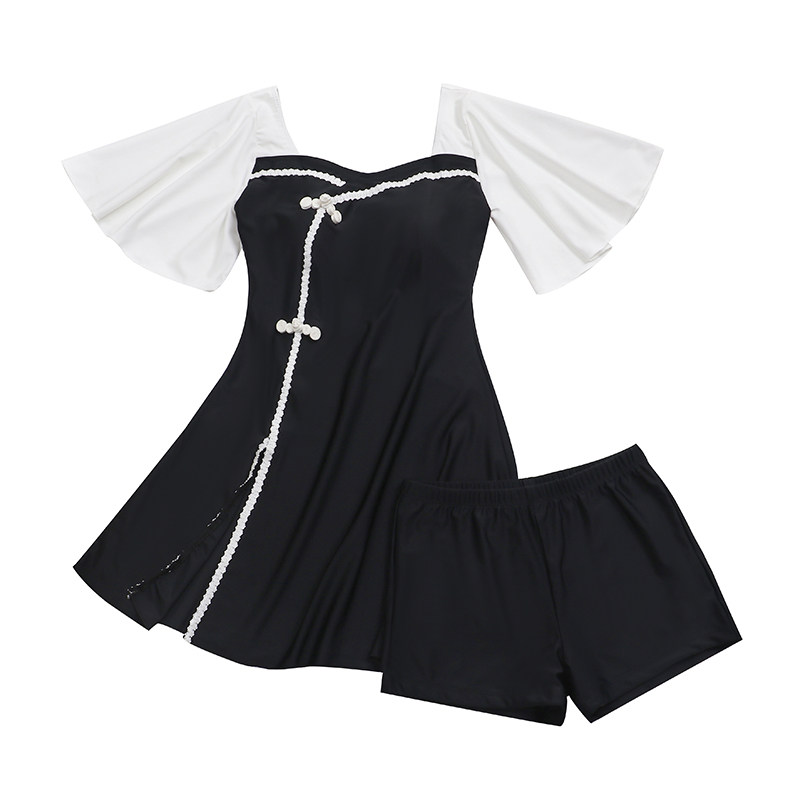 2021 new Chinese style fairy fan belly cover thin chest dress flat angle two-piece hot spring swimsuit female