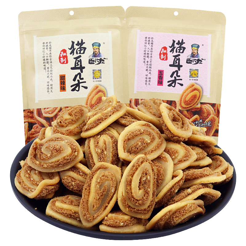 Crouching cat ears 138g*2 packs spiced sweet and spicy big bag of snacks snacks leisure net red nostalgic cat ear crisps