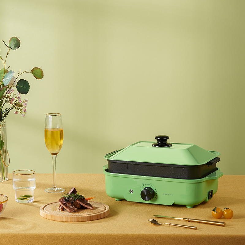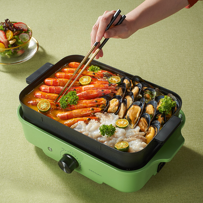 Ronganda Multi-functional cuisine pan Home Two-style electric hot pot barbecue stove Multi-purpose breakfast electric steam boiler square