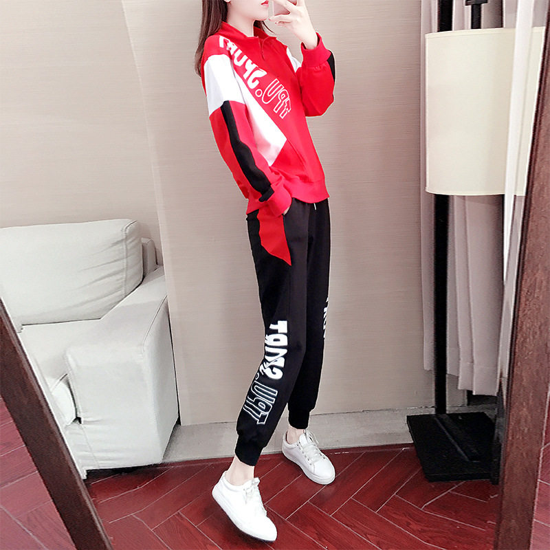Casual sports suit women 2020 autumn and winter new square dance fashion shuffling fashion print sweater two-piece set