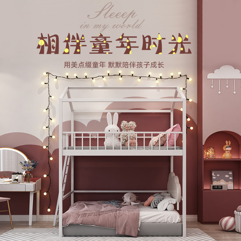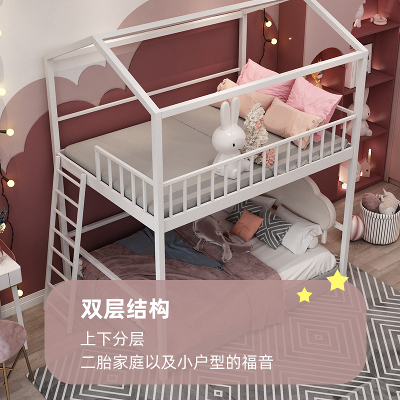 Children's bed small apartment loft bed multi-functional space-saving duplex second-floor elevated bed sheet upper modern minimalist bed