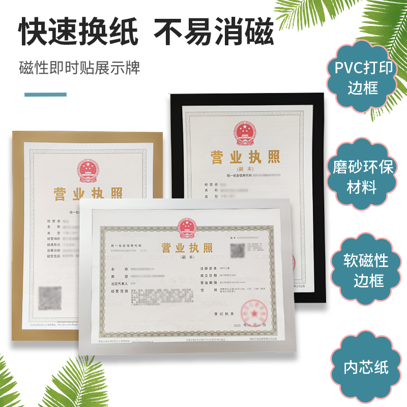 The new version of the industrial and commercial business license frame three-in-one A3A4 copy protective cover health license photo frame magnetic sticker