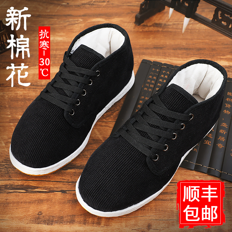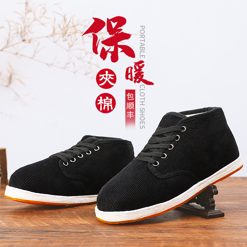 Old Beijing Cloth Shoes Men's Cotton Shoes Handmade Kilolayers Bottom Fathers Elderly Plus Suede Warm Non-slip Bull Gluten Bottom Old Cloth Shoes