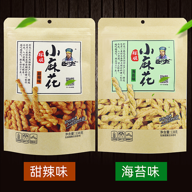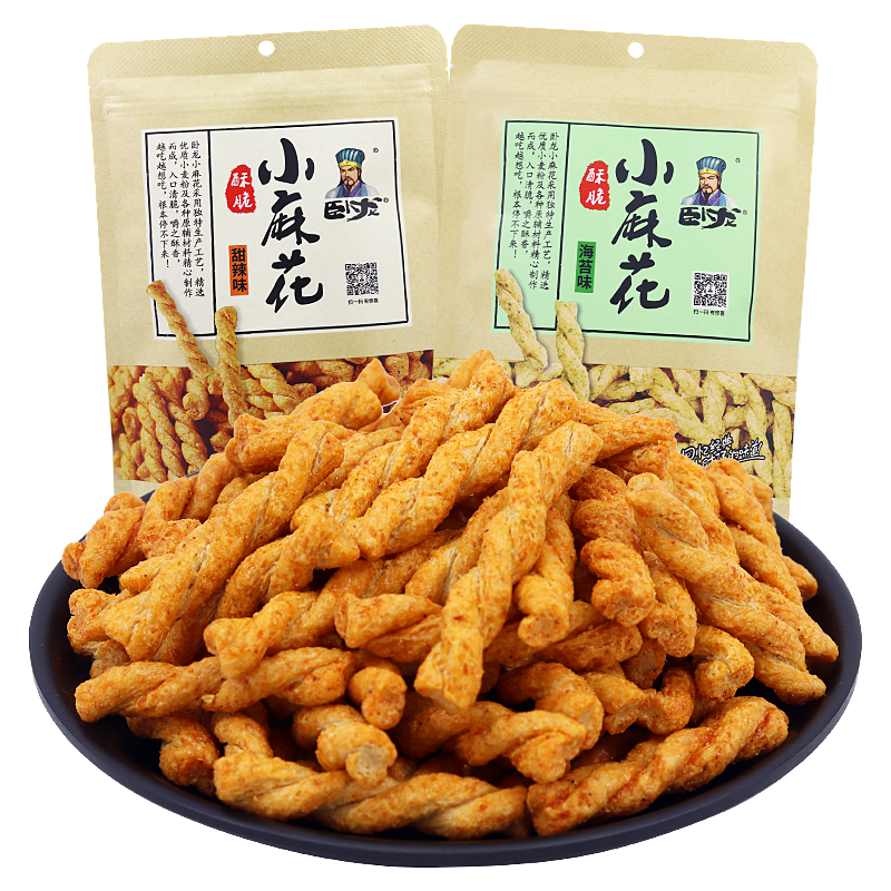 Wolong small hemp flowers 138 gr * 2 packs of sweet and spicy sea Tweed taste office Leisure snack net red handmade nostalgic snack